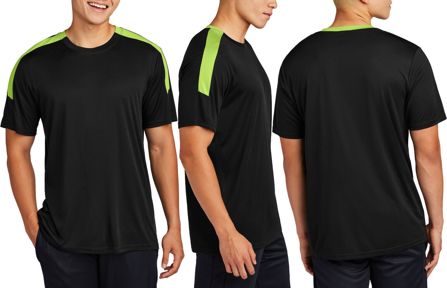 Mens Dri Fit Color Block Shoulder T-Shirt Moisture Wicking Tee UPF 30+ XS-4XL